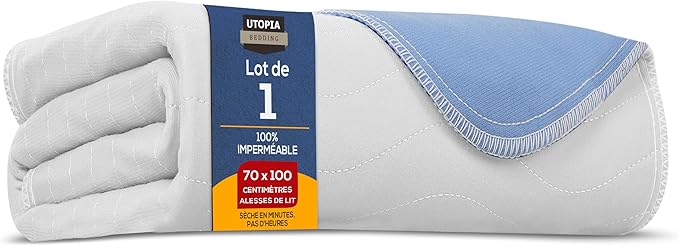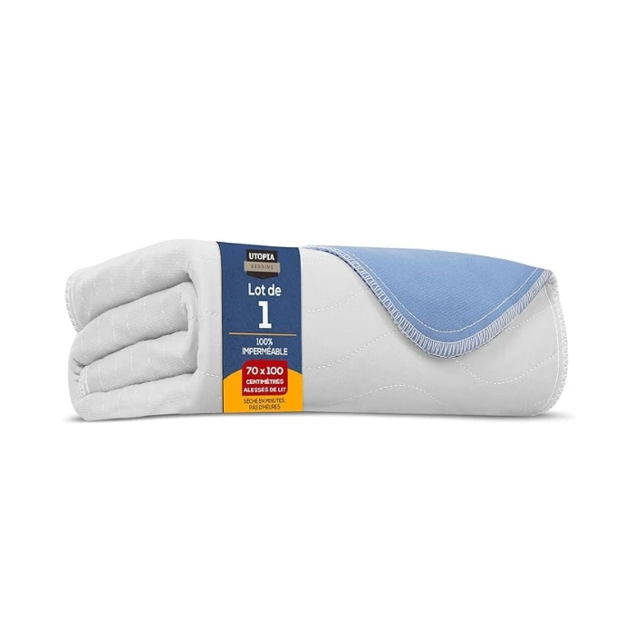 Nous avons testé, en tant que client mystère, l’alèse Utopia Bedding 70×100 cm (Lot de 1) Blanc/Bleu