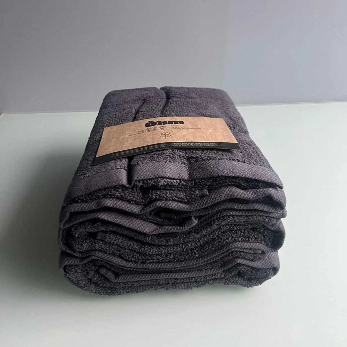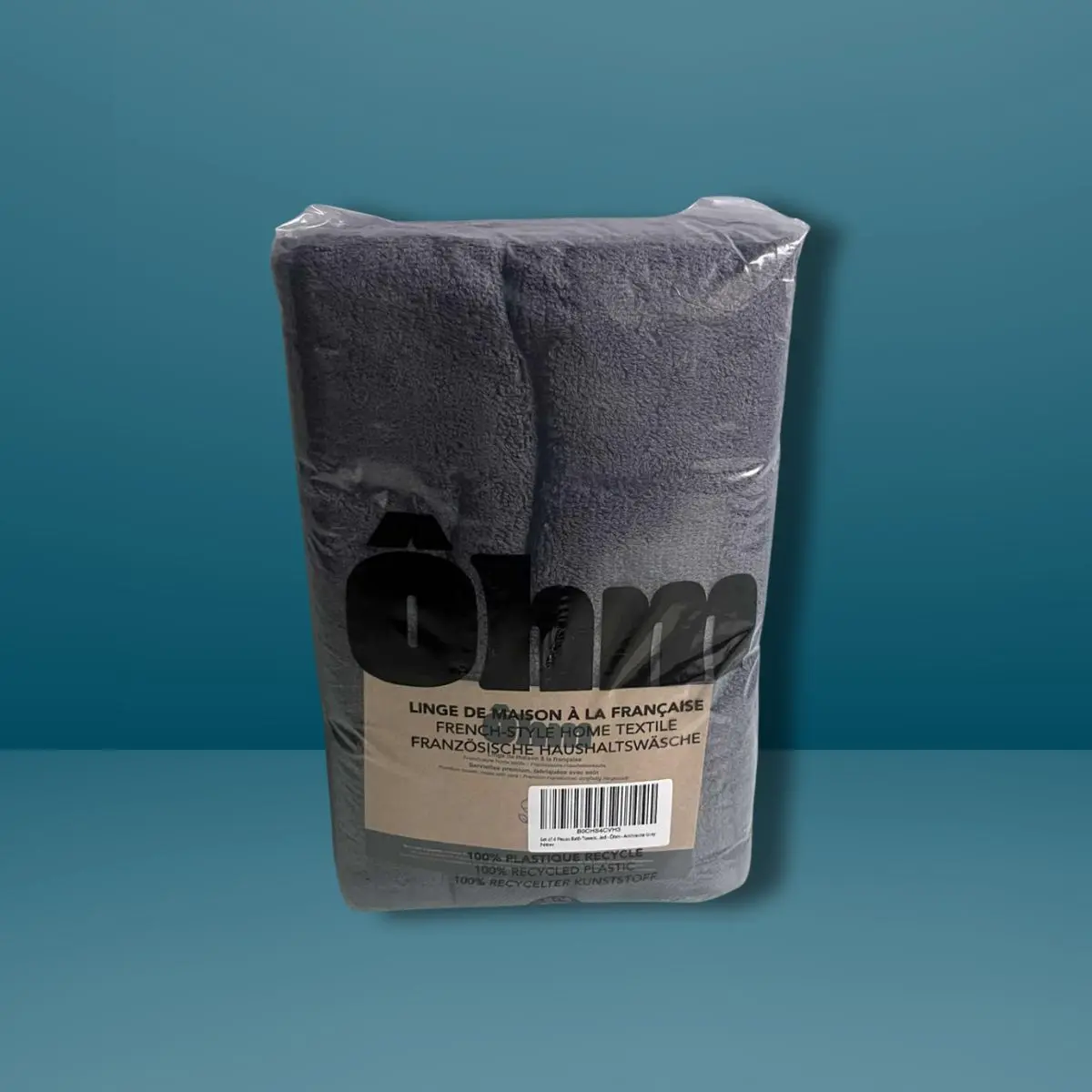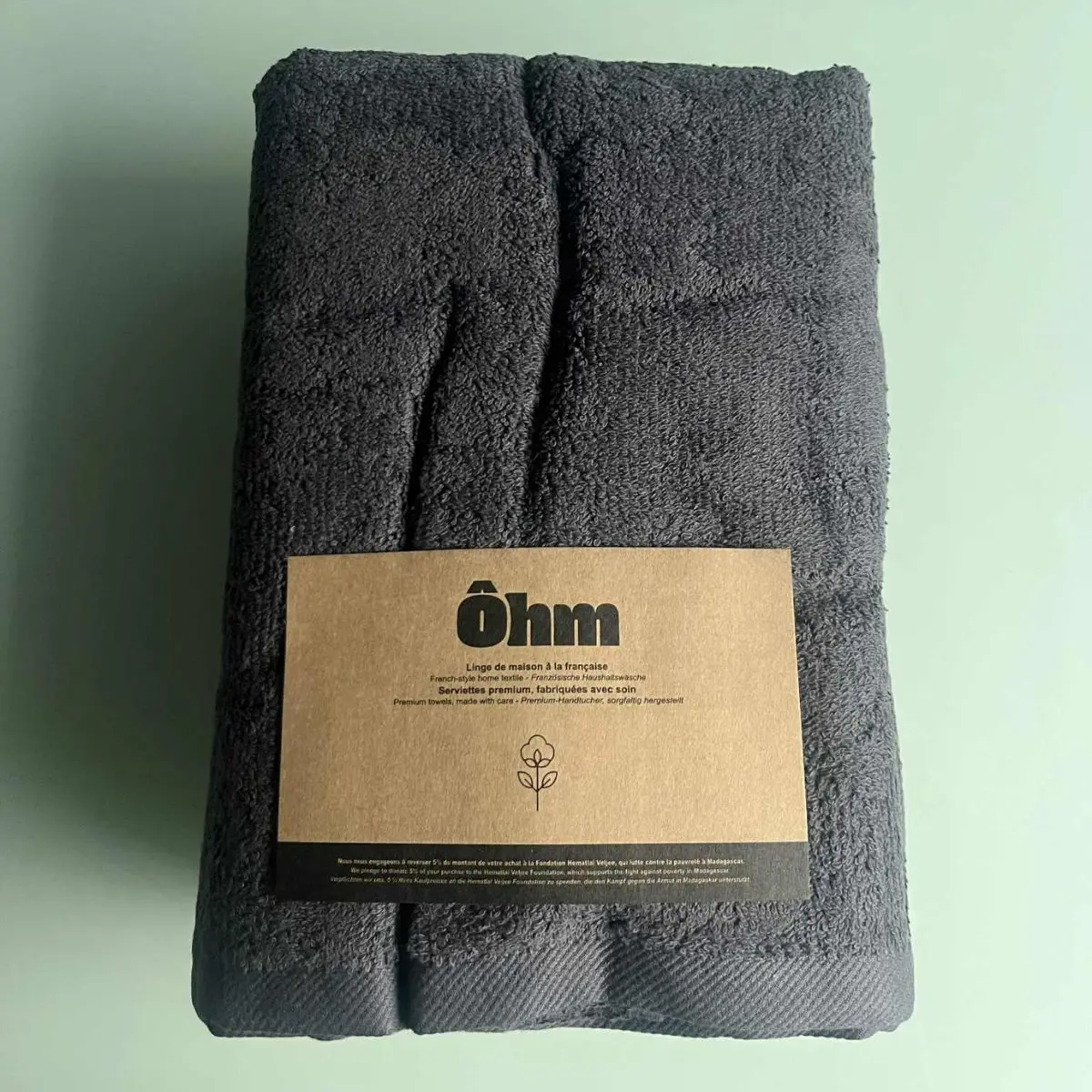 Nous avons audité le lot de 4 serviettes de bain et de toilette de la marque Ôhm. Ce set comprend 2 serviettes de bain (70x140 cm) et 2 serviettes de toilette (50x100 cm), confectionnées en coton 100% avec une densité de 500 g/m².
