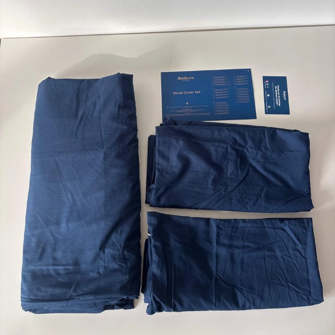 | Some dimensional discrepancies have been observed on the pillowcases, although they remain within an acceptable tolerance for this type of textile product. Furthermore, some users report that the duvet's hold inside the cover could be improved despite the presence of attachments. Finally, the claim of breathability was not documented during the audit, and the entire set is made of polyester microfiber. |