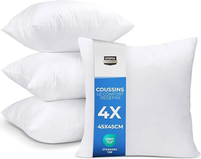 La fiche produit Utopia Bedding – Lot de 4 Coussins de Garnissage 45×45 cm (blanc) présente des promesses globalement réalistes et cohérentes.