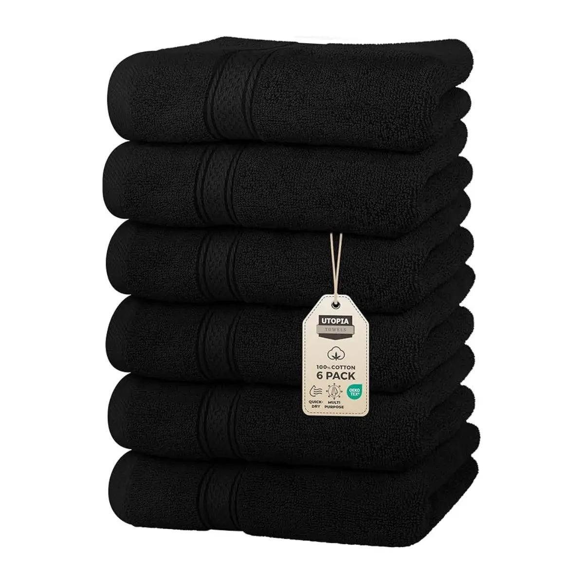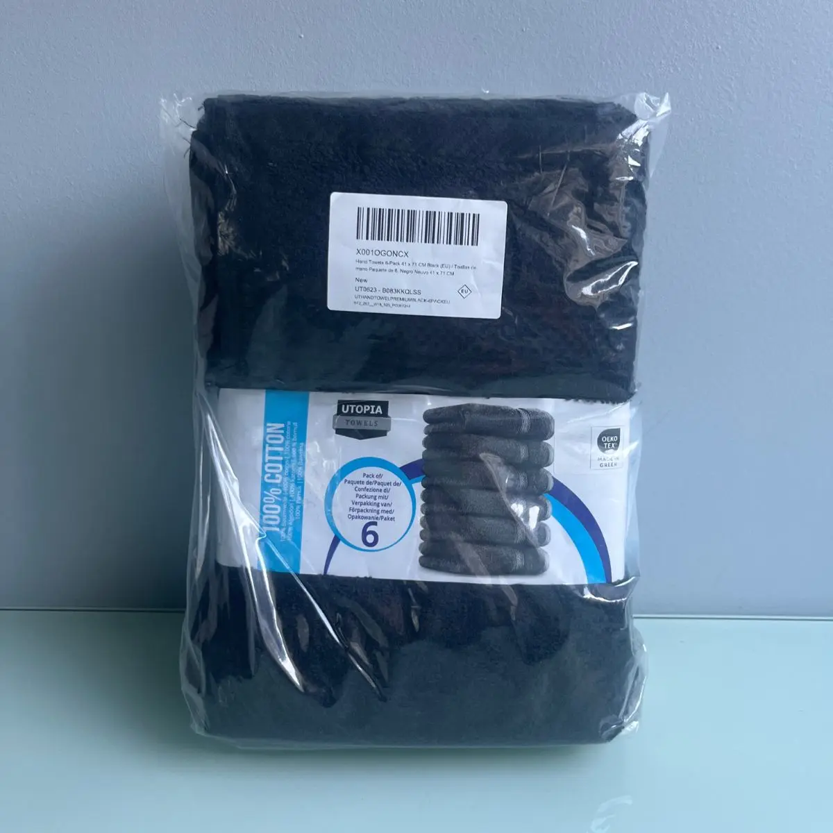 Nous avons acheté, en tant que client mystère, le lot de 6 essuie-mains Utopia Towels (41×71 cm, coloris noir), vendu sur Amazon France.