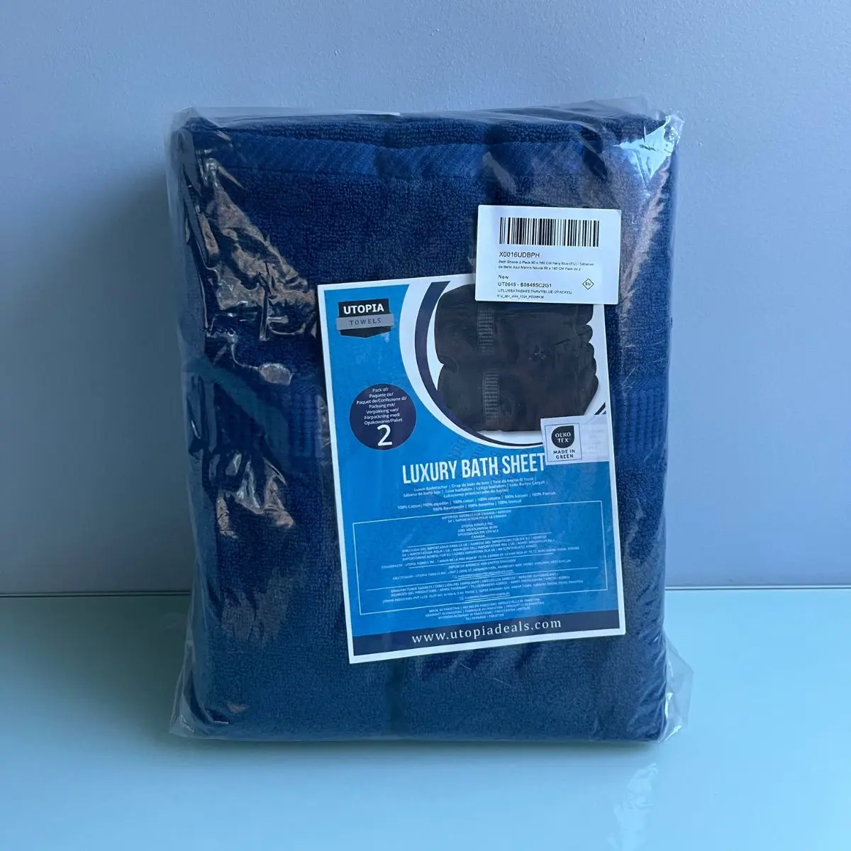 Nous avons effectué un achat anonyme de ce lot de 2 serviettes de bain de la marque Utopia Deals sur Amazon France. En tant qu'institut de test indépendant, nous avons évalué ce produit avec soin, de la commande à l'utilisation.