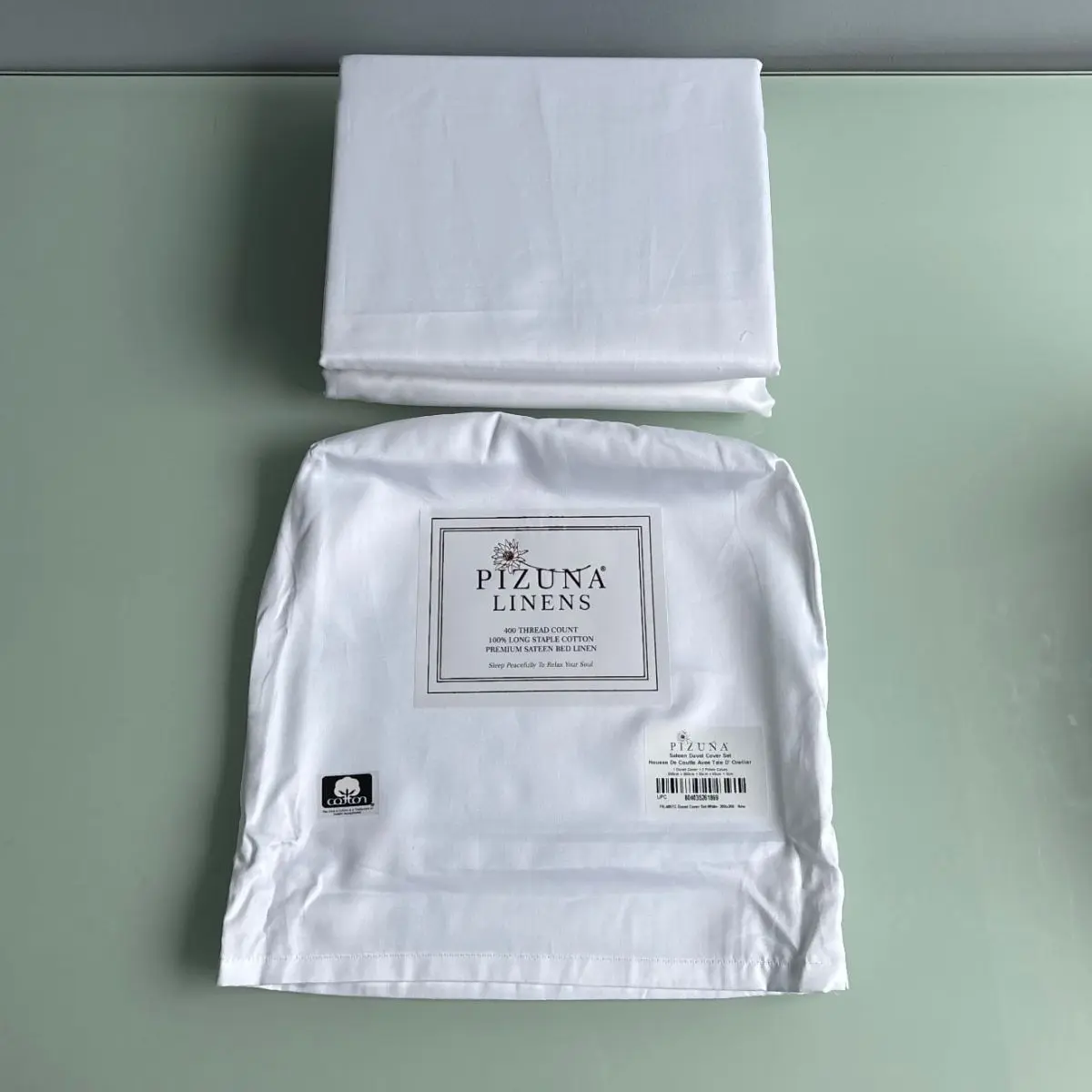 Nous avons testé, en tant que client mystère, l'Ensemble Housse de Couette en coton peigné de la marque Pizuna Linens. Commercialisé comme un linge de lit de luxe en 100% coton longue tige 400 Fils à armure satin, ce produit se positionne sur le segment qualitatif.