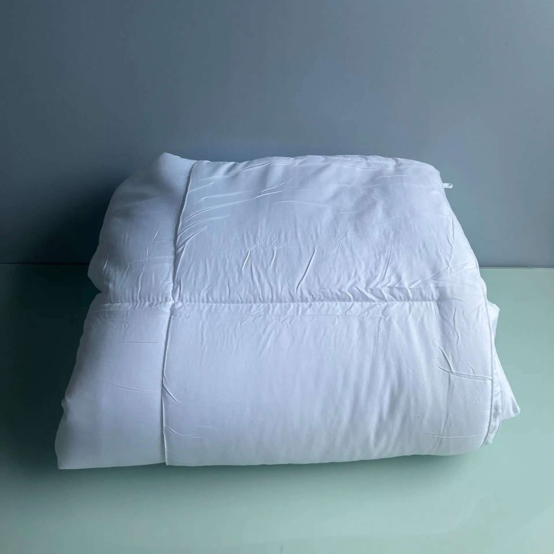 Ce modèle se distingue par sa microfibre douce, son rembourrage en fibres siliconées 370 g/m², et son motif matelassé “style boîte” qui maintient le garnissage bien réparti pendant le sommeil.