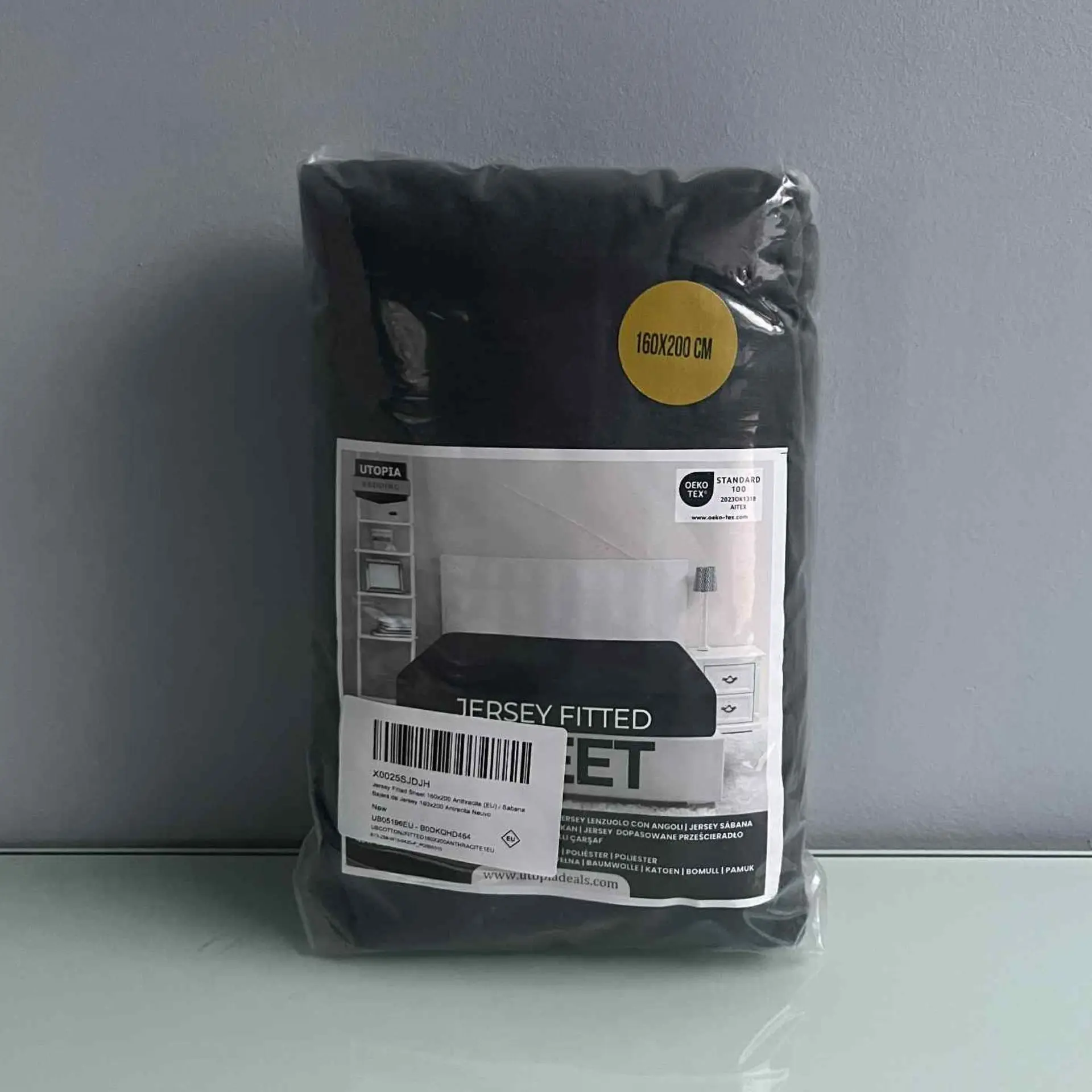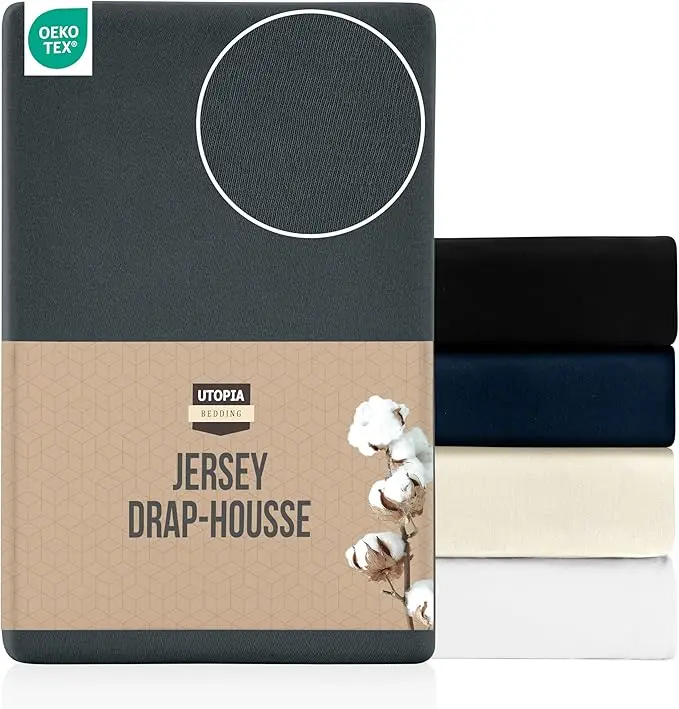 Nous avons testé, en tant que client mystère, le drap-housse Utopia Bedding Jersey 160×200 cm – Anthracite, un modèle présenté comme :